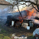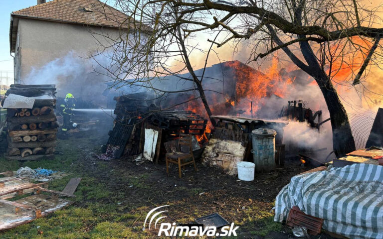 FOTO: Požiar hospodárskej budovy, zasahujú hasiči aj polícia, cesta je neprejazdná