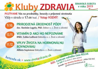 Spoločenské centrum Betesda pozýva na Kluby zdravia, aj sériu prednášok Hľadanie