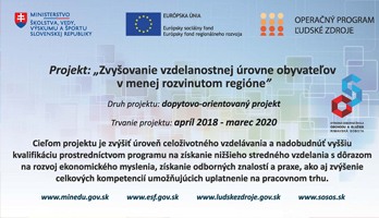 SOŠOS realizuje projekt na doplnenie nižšieho stredného vzdelania