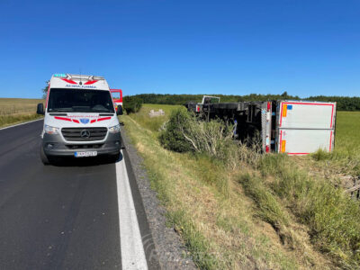 V smere do R. Soboty skončil kamión mimo cesty, na mieste sú hasiči aj polícia