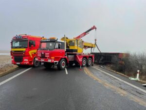 Kamión skončil mimo cesty, polícia odkláňa dopravu