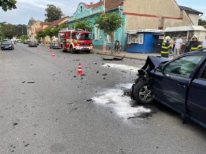 Na Železničnej ulici sa zrazili dve autá, v jednom sedela tehotná žena, v druhom aj deti