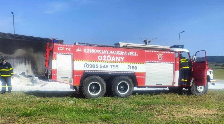 Pri požiari kamiónu s vápnom sa hasiči striedali počas celého dňa aj noci
