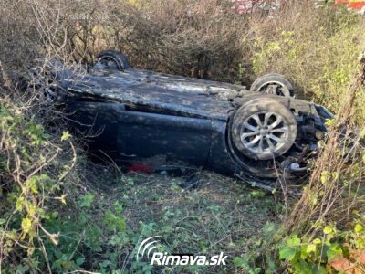 FOTO: Pri R. Sobote vodič s autom vyletel z cesty a skončil v priekope