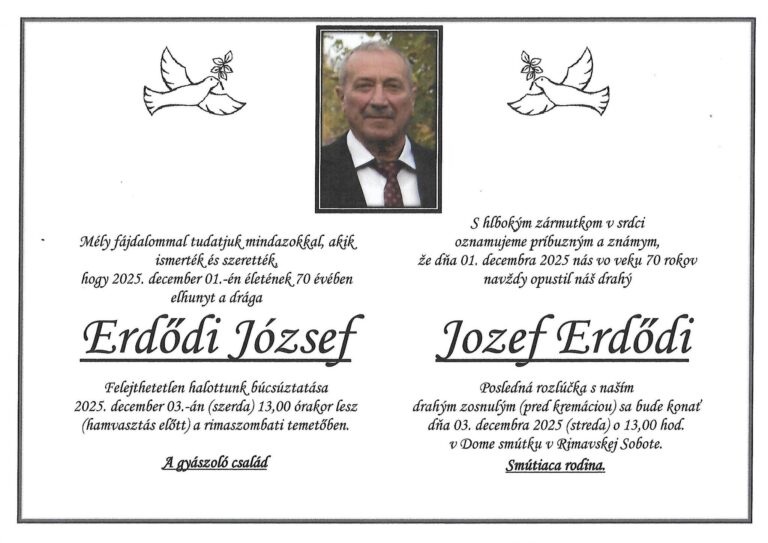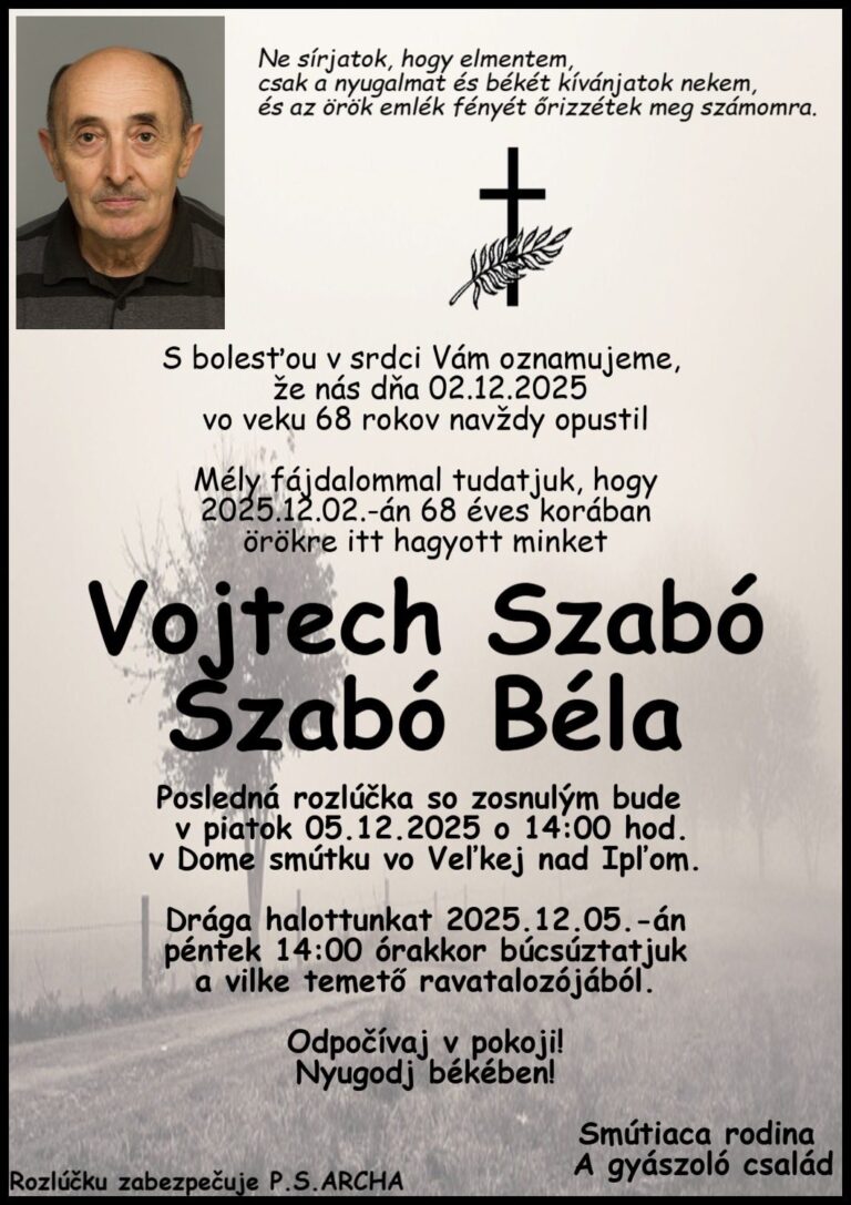 4.dec.2025 - Smútočné oznámenie, Vojtech Szabó (†68) Ďalej...