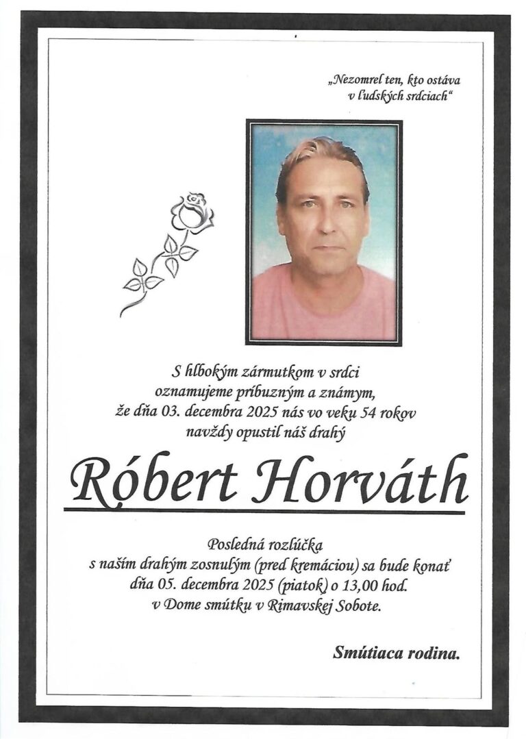 4.dec.2025 - Smútočné oznámenie, Róbert Horváth (†54) Ďalej...