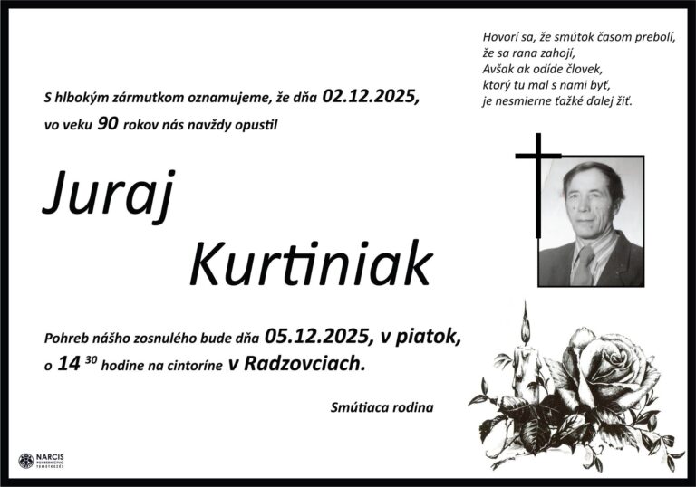 4.dec.2025 - Smútočné oznámenie, Juraj Kurtiniak (†90) Ďalej...