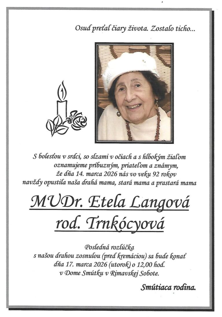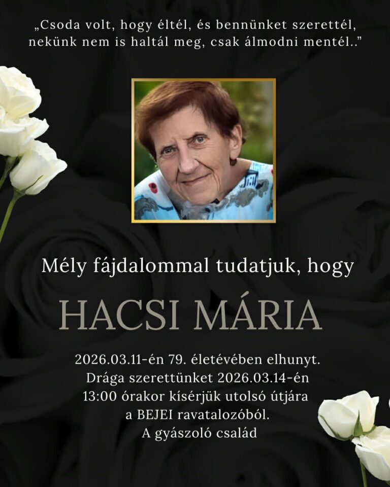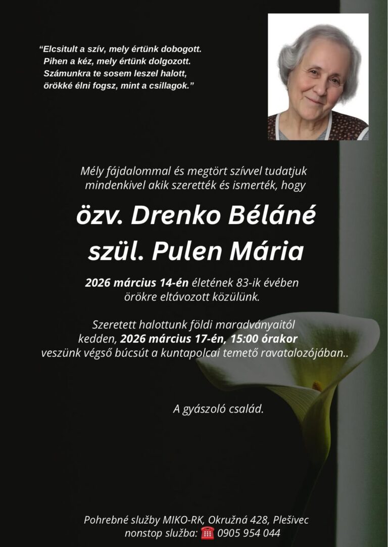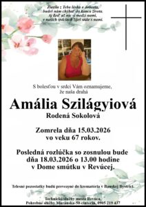 17.mar.2026 - Smútočné oznámenie, Amália Szilágyiová (†67) Ďalej...