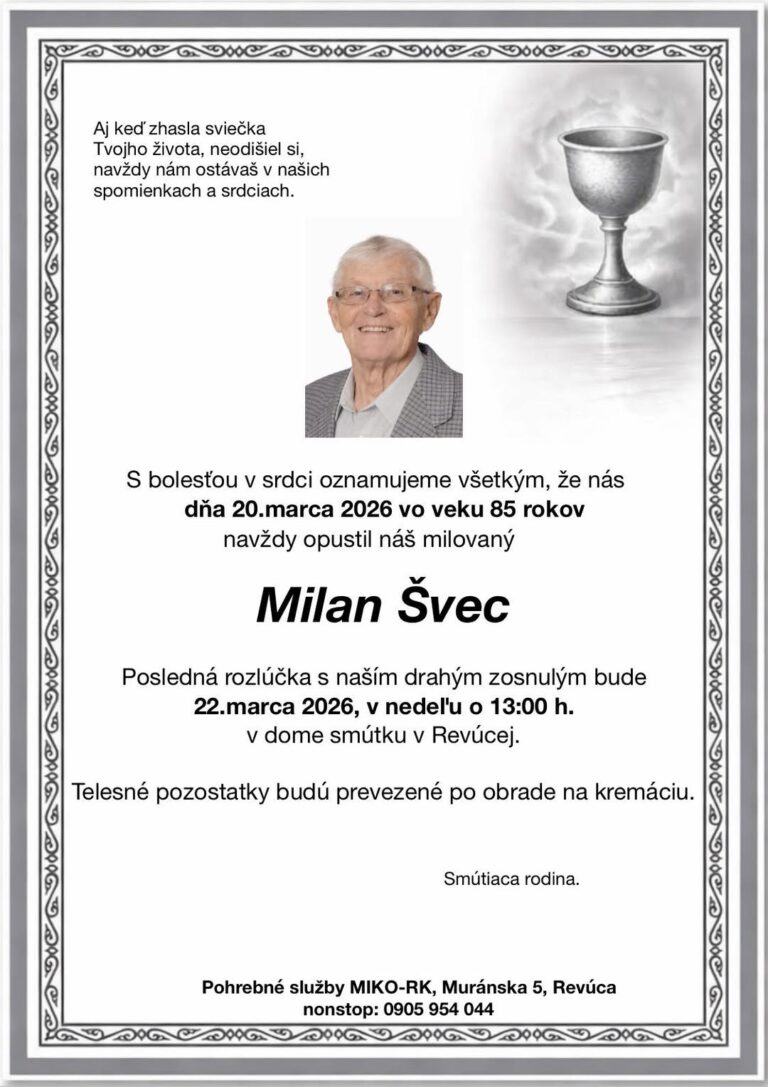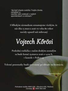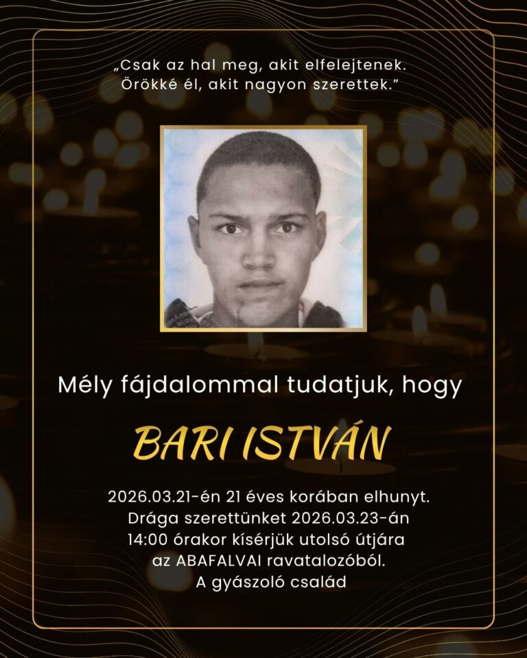 22.mar.2026 - Smútočné oznámenie, Bari István (†21) Ďalej...