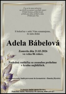22.mar.2026 - Smútočné oznámenie, Bari István (†21) Ďalej...