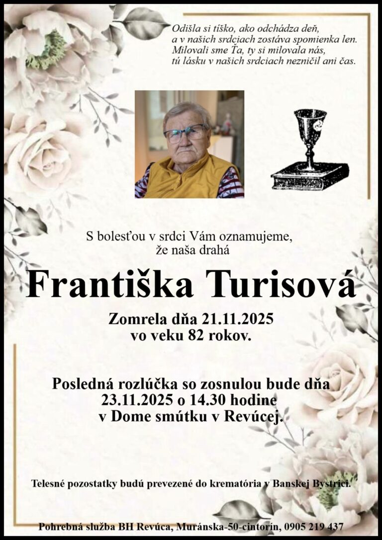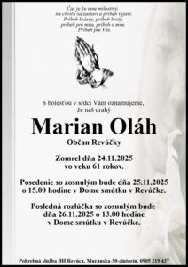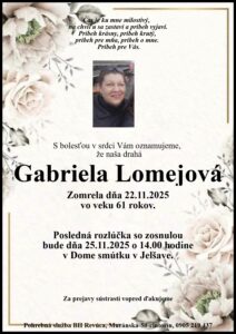 25.nov.2025 - Smútočné oznámenie, Gabriela Lomejová (†61) Ďalej...