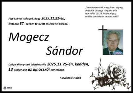 Smútočné oznámenie, Mogecz Sándor (†87)