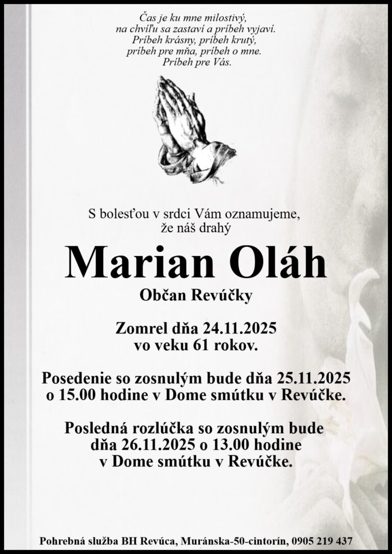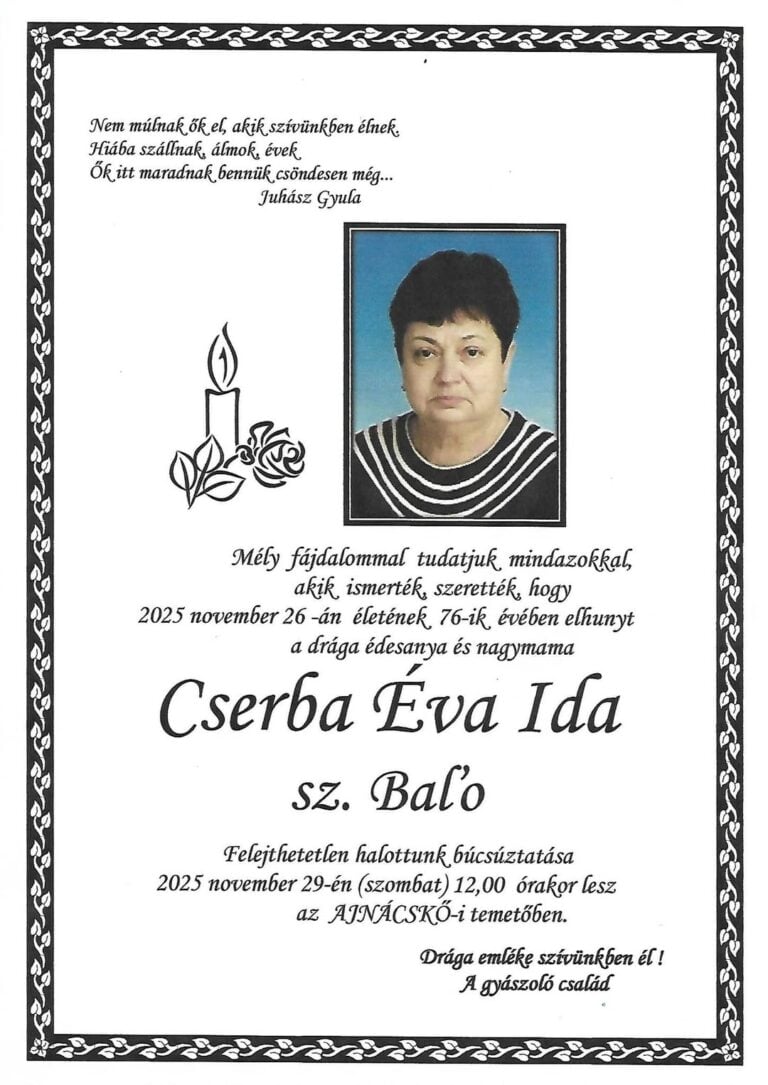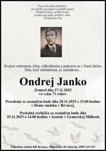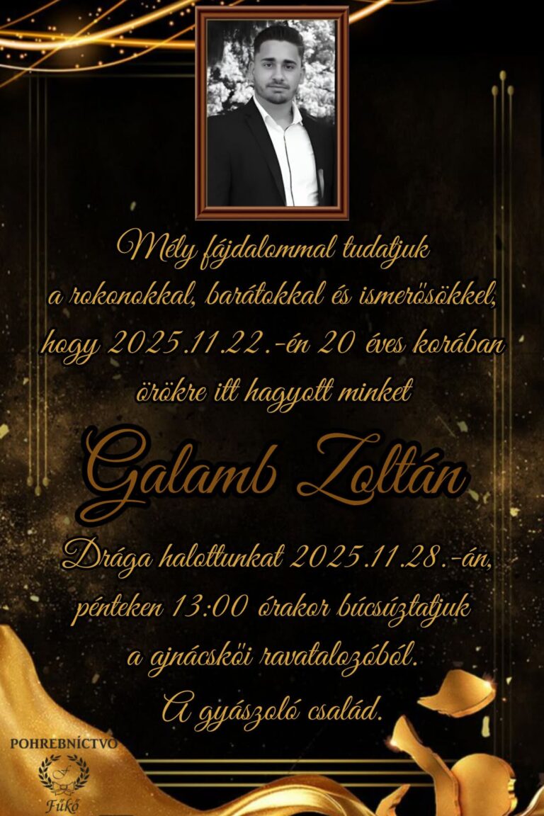 23.nov.2025 - Smútočné oznámenie, Mogecz Sándor (†87) Ďalej...