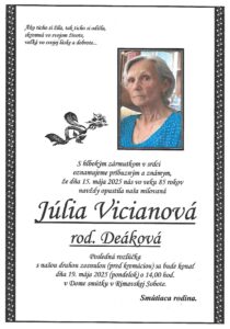 Smútočné oznámenie, Gabriela Lomejová (†61)