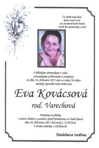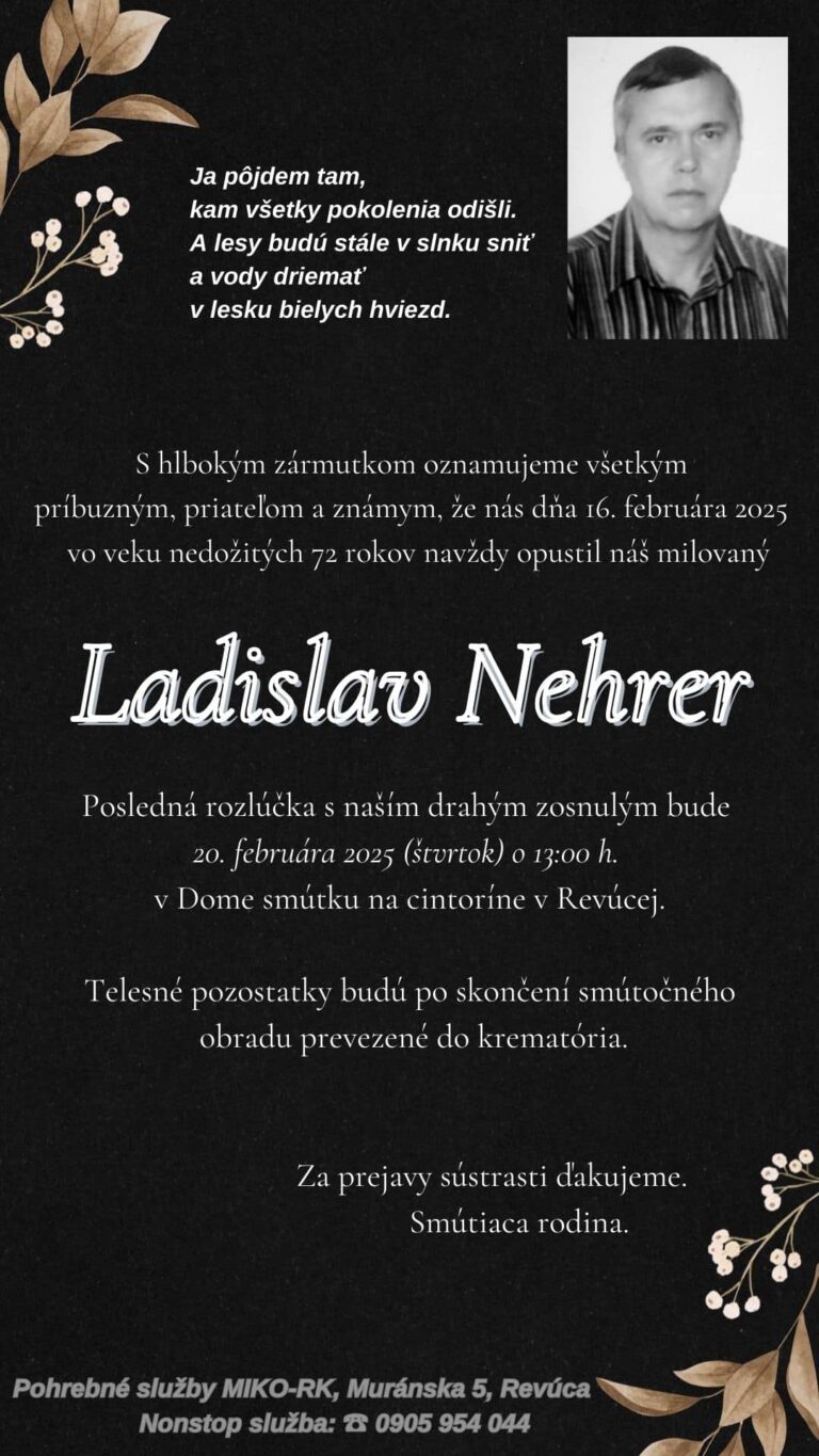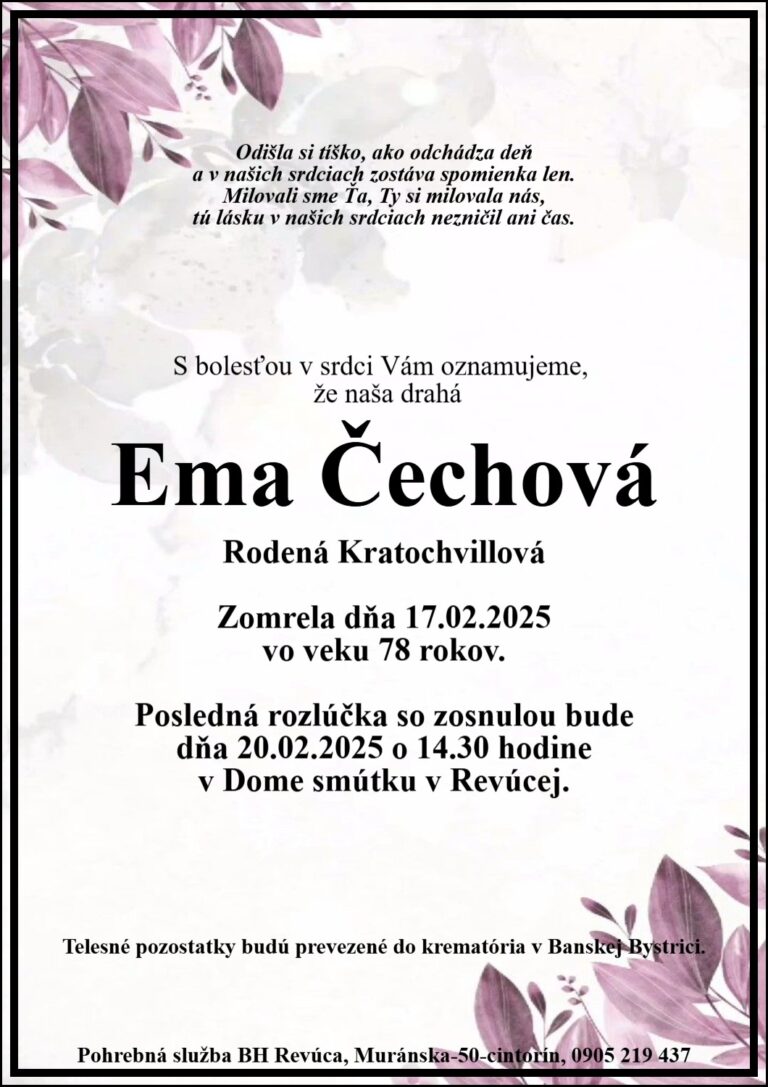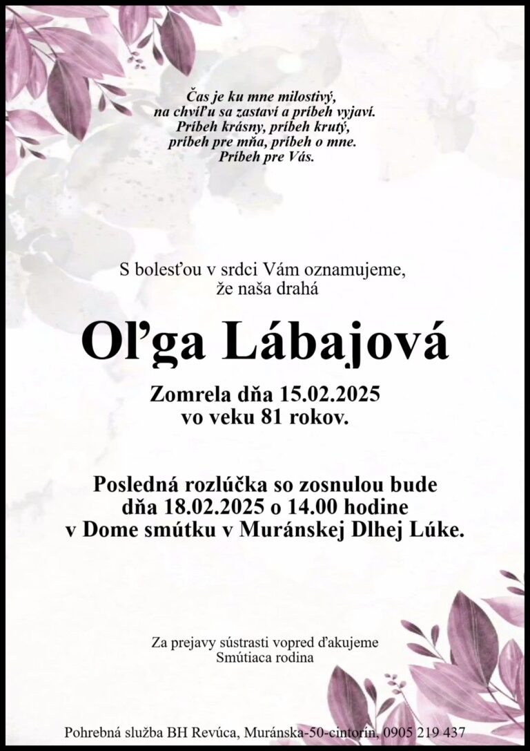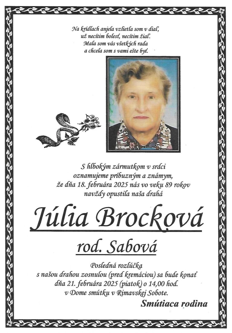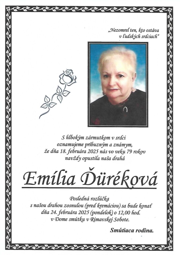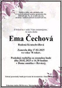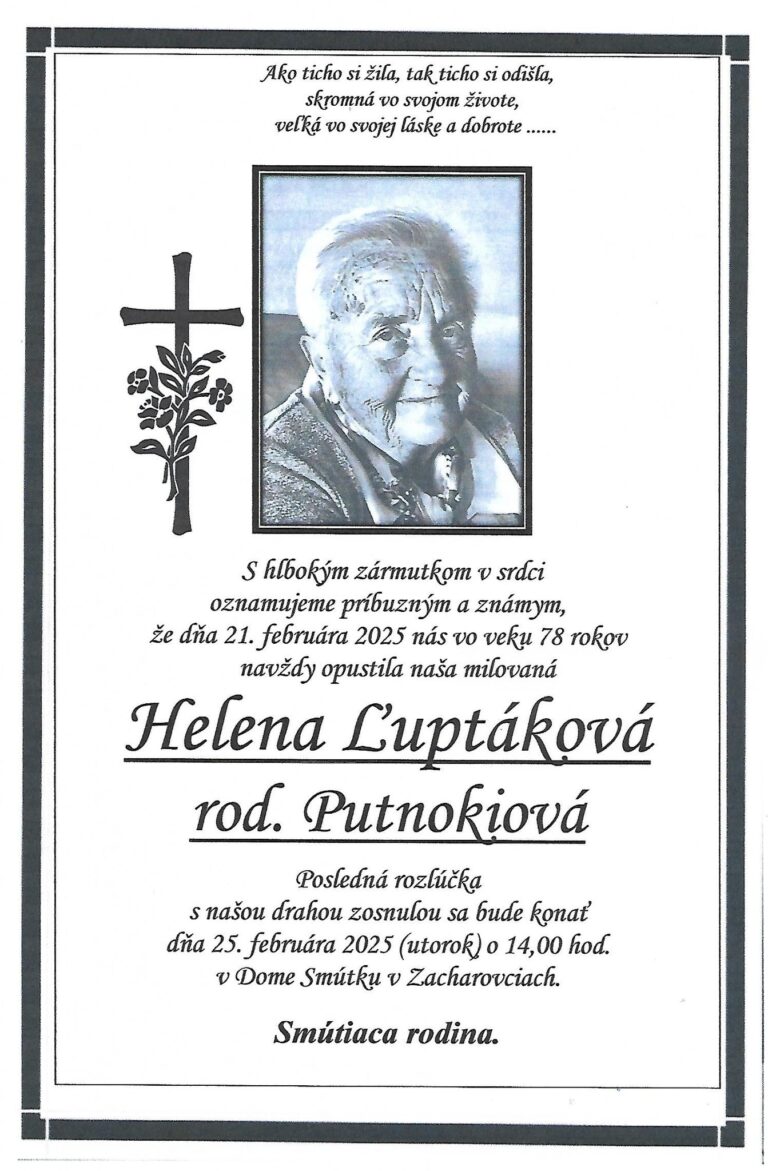23.feb.2025 - Dňa 5.3.2025 si pripomenieme 1. výročie, čo nás navždy opustila naša milovaná Margita Lesková. V našich srdciach ostávaš stále. Odpočívaj v pokoji.  Manžel Edo, syn Edo a dcéra Nina s rodinami. Ďalej...
