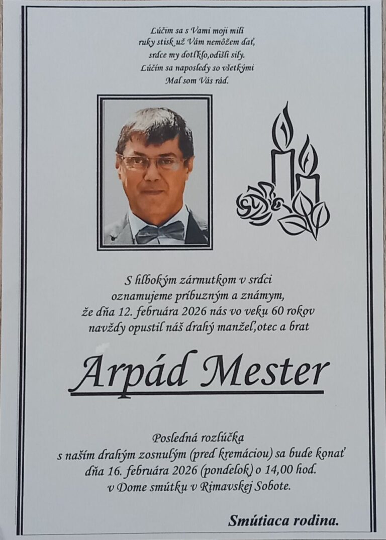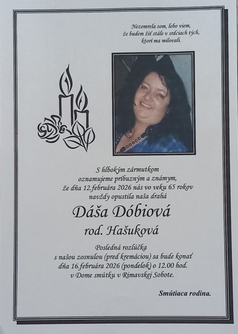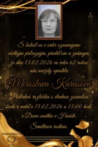 14.feb.2026 - Smútočné oznámenie, Miroslava Karasová (†62) Ďalej...