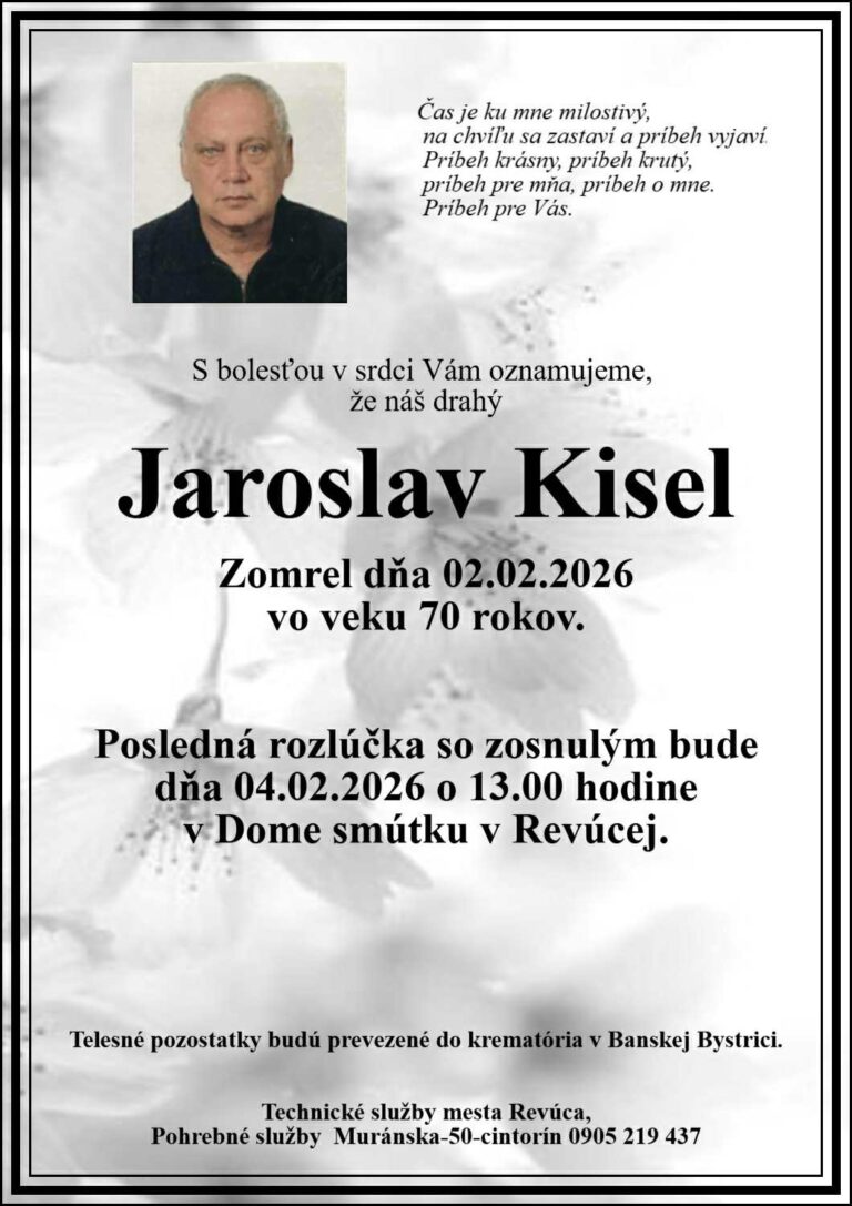 3.feb.2026 - Smútočné oznámenie, Jaroslav Kisel (†70) Ďalej...
