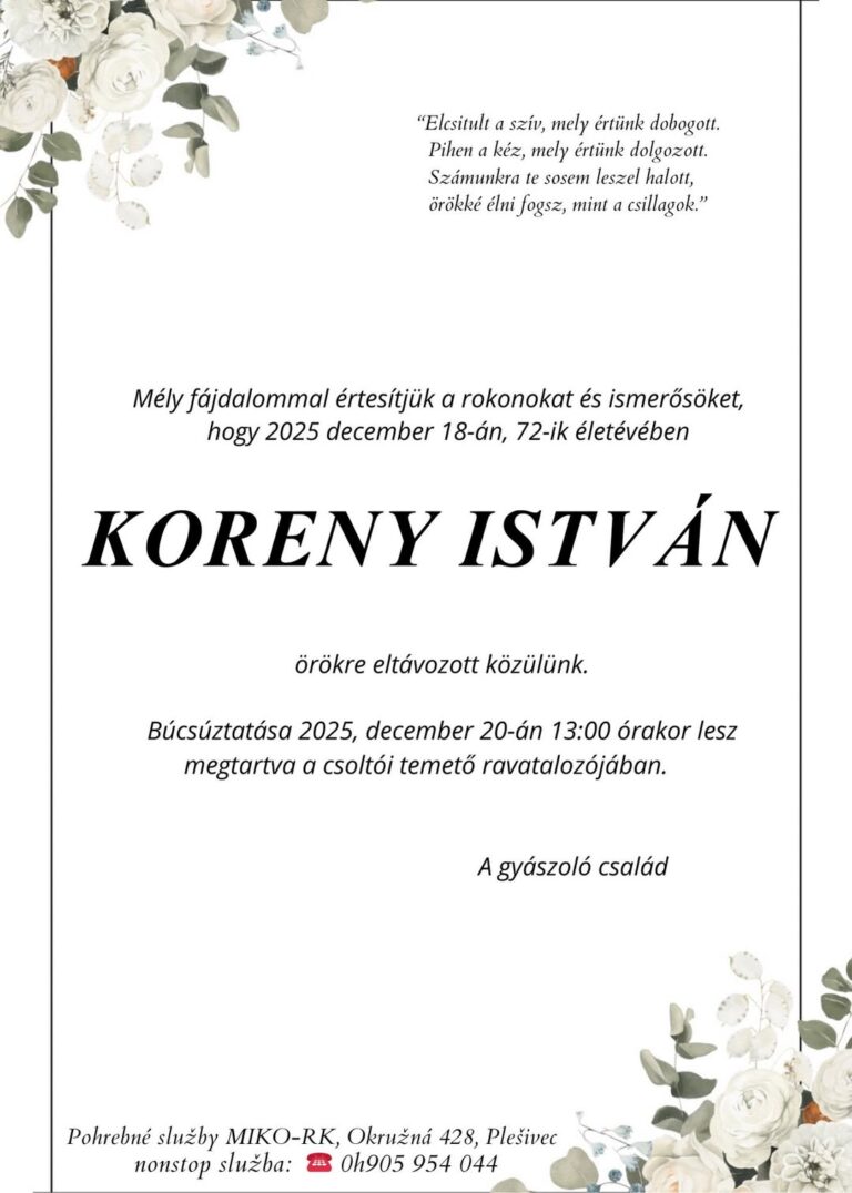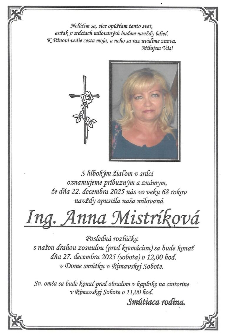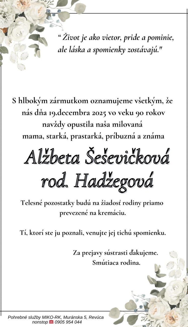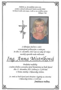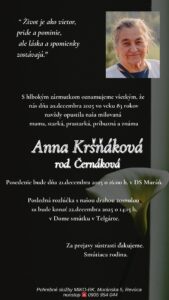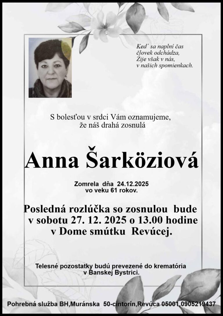 25.dec.2025 - Smútočné oznámenie, Anna Šarköziová (†61) Ďalej...