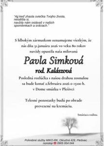 3.feb.2026 - Smútočné oznámenie, Gerda Fekiačová (†85) Ďalej...