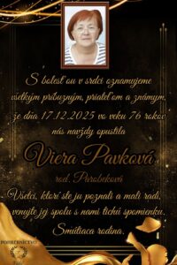 14.dec.2025 - Smútočné oznámenie, Eva Oláhová, rod. Horváthová  (†70) Ďalej...