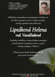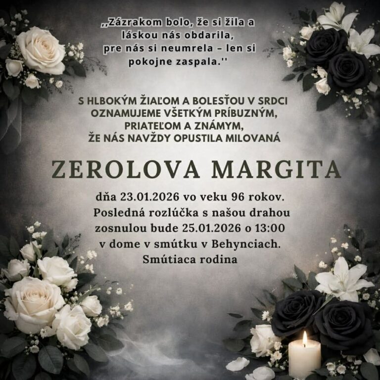 27.jan.2026 - Smútočné oznámenie, Zuzana Ďurejová (†94) Ďalej...