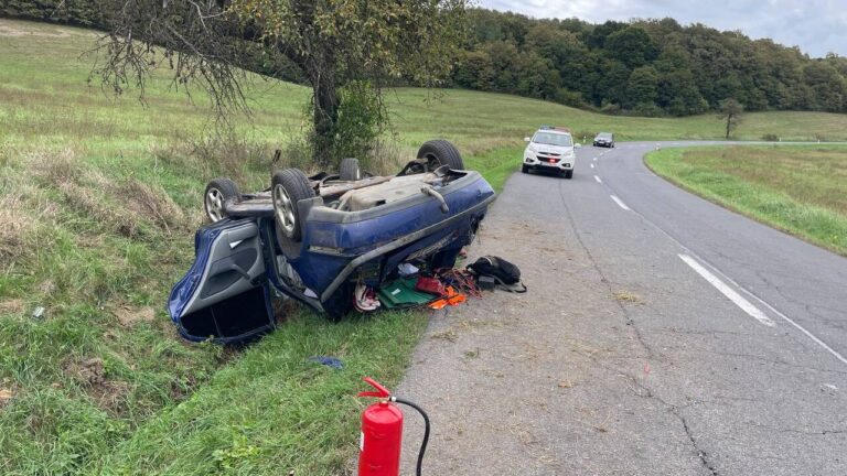 Osobné auto prešlo do protismeru, prevrátilo sa a skončilo v priekope