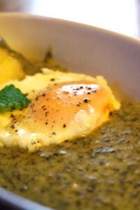 Šťaveľová (štiavová) omáčka s volským okom a zemiakovou kašou
