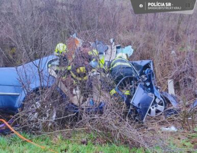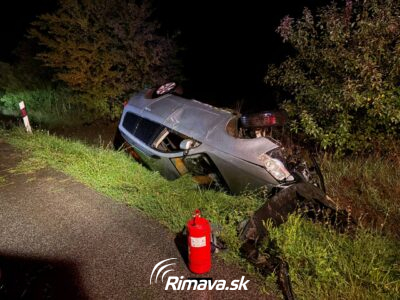 FOTO: Šmyk, zdemolované auto, šofér v nemocnici – nočná nehoda v okrese