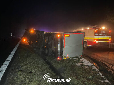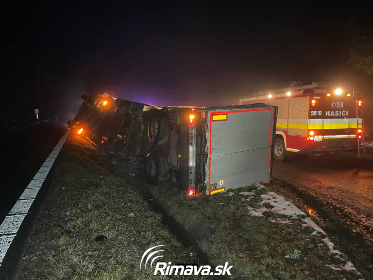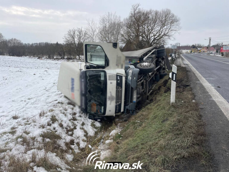 Vodič s kamiónom zišiel z cesty a prevrátil sa, z priekopy ho budú vyťahovať
