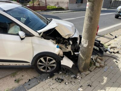 Kuriózna nehoda pri Rimavskej Sobote. Vodič dostal šmyk a zlomil elektrický stĺp