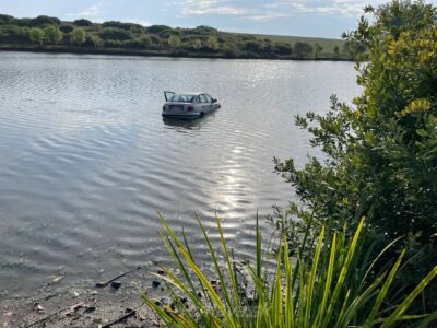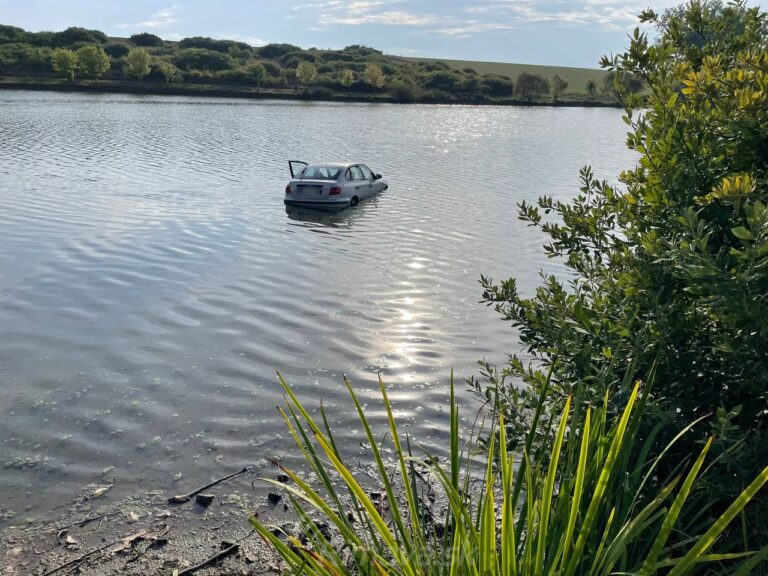 FOTO: Vodič skončil vo vodnej nádrži, auto vytiahli hasiči
