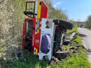 Hasiči pomáhali hasičom, ktorí skončili prevrátení v jarku