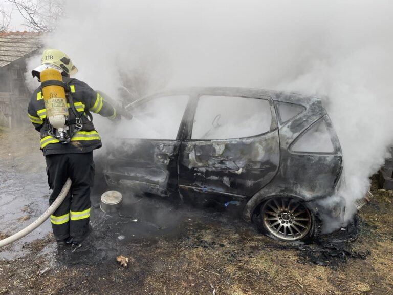 Hasiči zasahovali pri požiari auta priamo vo dvore jeho majiteľa, zhorelo do tla