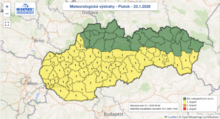 23.jan.2026 - Slovenský hydrometeorologický ústav vydal výstrahy 1. stupňa, ktoré sa zatiaľ týkajú piatka a soboty a upozorňuje na ojedinelý výskyt poľadovice na celom južnom Slovensku. Ďalej...
