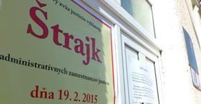 19.feb.2015 - Nápis „Štrajk“ červenými písmenami a požiadavky administratívnych zamestnancov justície dnes figurujú aj na vstupných dverách okresného súdu v Rimavskej Sobote. Zabezpečená je len jeho základná prevádzka, a to prijímanie podaní v podateľni. Informuje o tom oznam umiestnený takisto na dverách. Podľa našich informácií sú na súde len sudcovia a riaditeľka správy súdu. Ďalej...