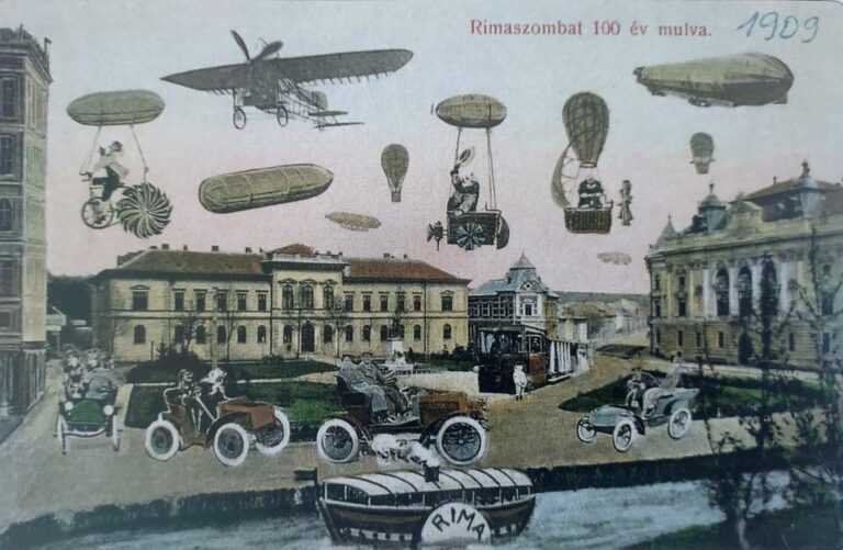 FOTO: Električka, výletná paroloď a množstvo lietajúcich vynálezov. Takto mala vyzerať budúcnosť Rimavskej Soboty