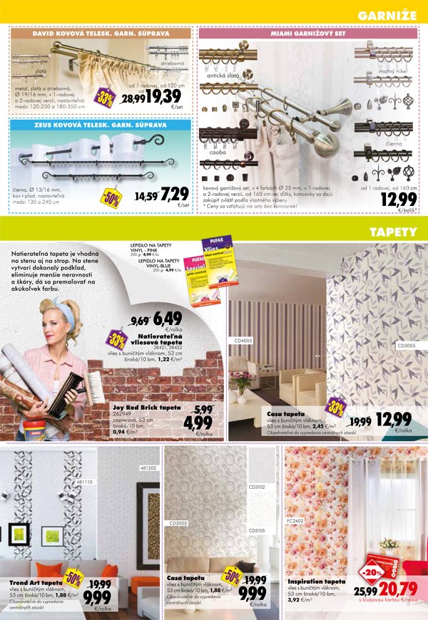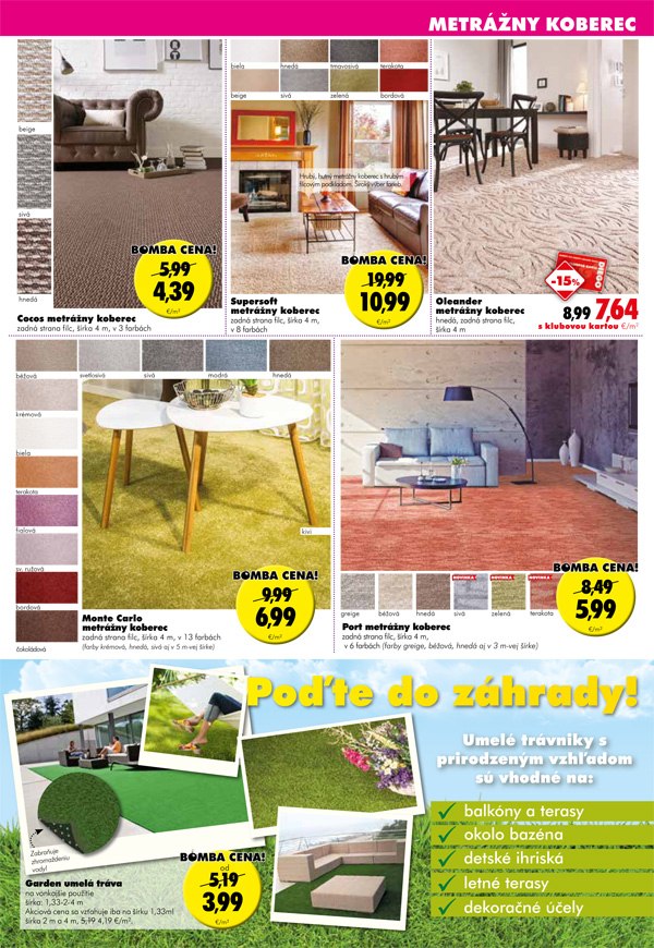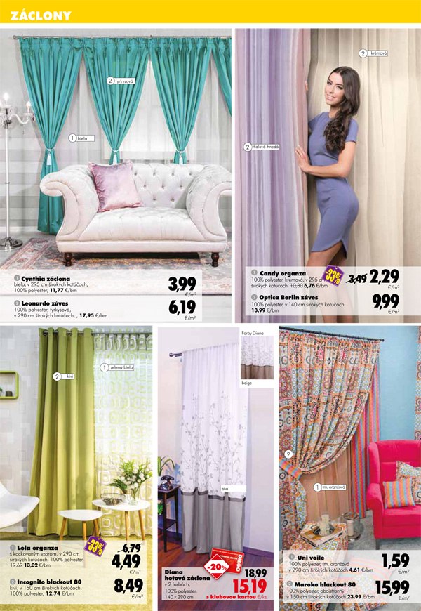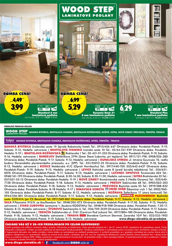 Začiatok jari je to najvhodnejšie obdobie na oživenie vášho domu, bytu krásnymi novými záclonami, či kobercami. V aktuálnej ponuke rimavskosobotskej predajni DIEGO nájdete obrovský výber štýlov a farieb záclon, tapiet aj kobercov za bombastické ceny. A samozrejme nechýba ani zvyčajne bohatá ponuka laminátových či vinylových podláh.