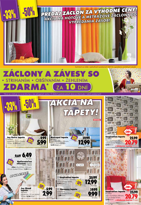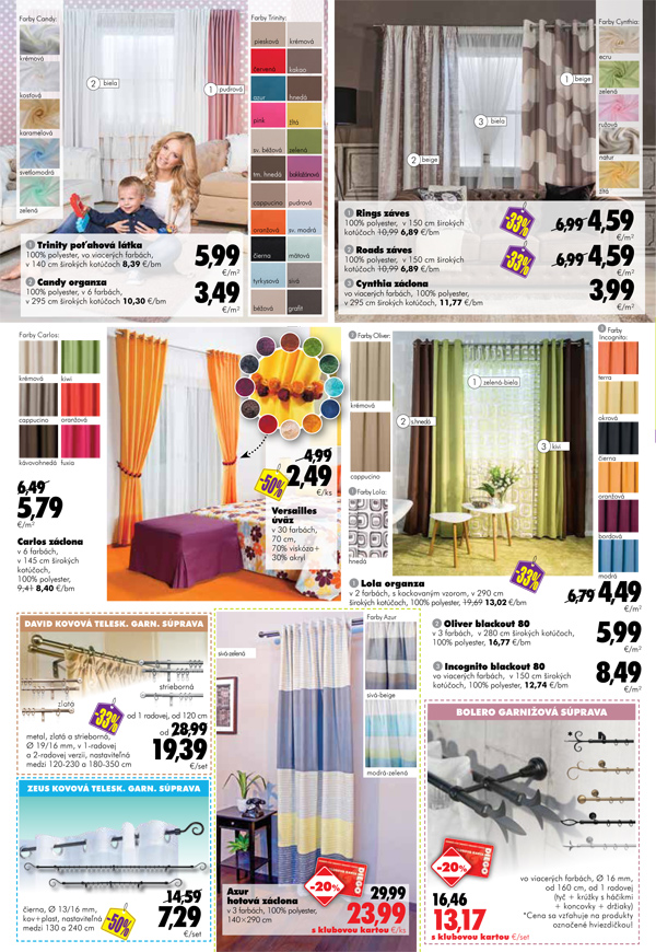 Upršané, zamračené jesenné a zimné počasie vie poriadne pokaziť náladu. Bojujte so zimnou depresiou žiarivými farbami vo vašom byte. Rimavskosobotská predajňa DIEGO vám ponúka závesy a záclony vo farebných kombináciách od výmyslu sveta, teraz až s 33% zľavou a so strihaním, obšívaním a žehlením zadarmo.