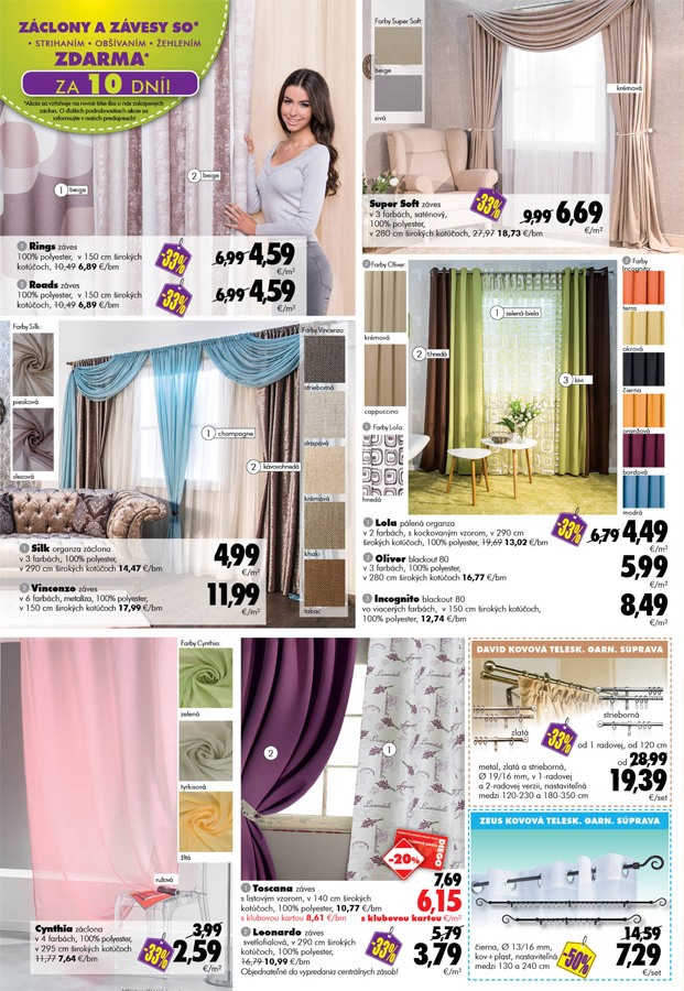 Tento október je najlepším obdobím na výmenu vašich záclon či závesov. Ale nie kvôli počasiu, či sezóne, ale pre októbrovú akciu predajne DIEGO v Rimavskej Sobote. Ponúkajú vám totiž široký výber záclon s 30-50% zľavou a navyše teraz s obšívaním zadarmo.