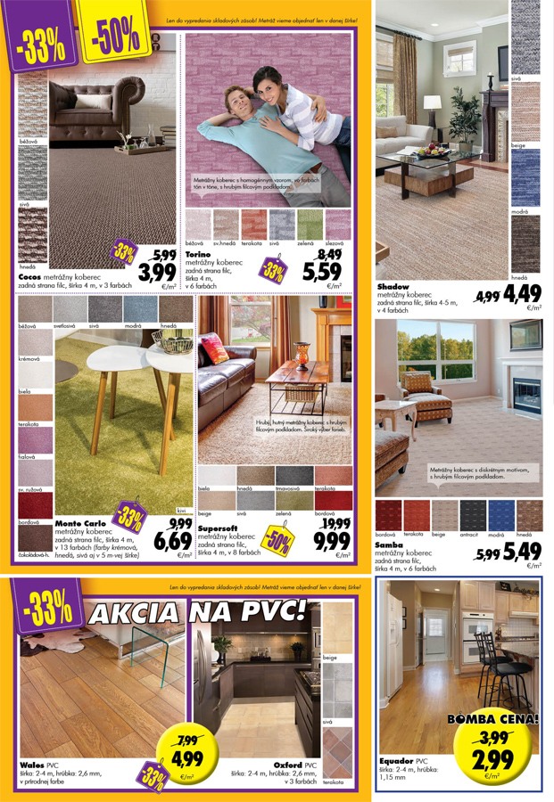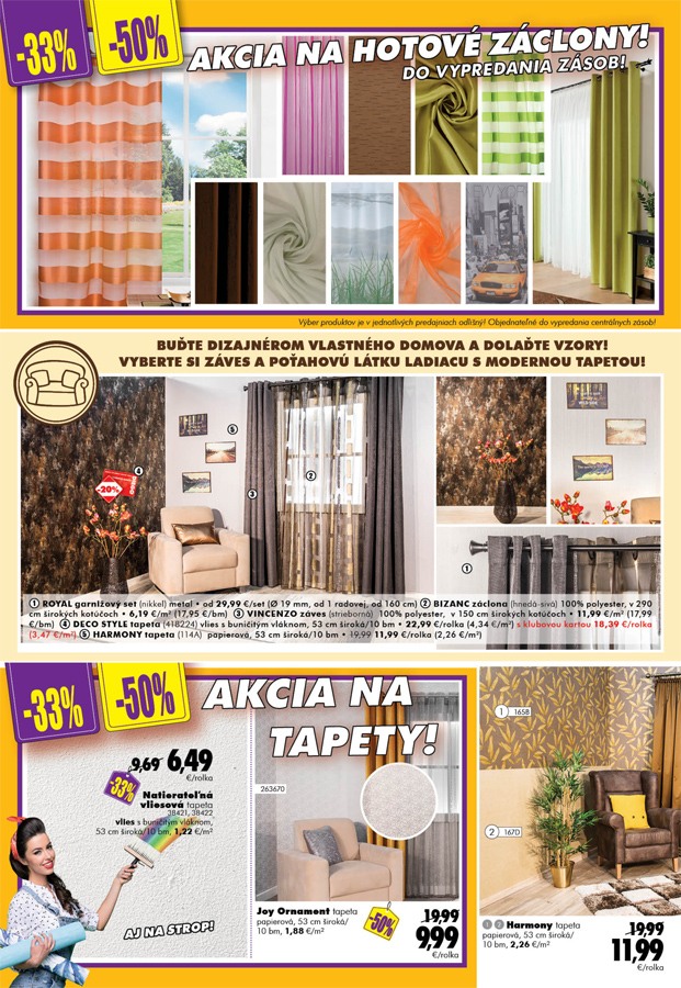 V akcií okrem záclon nájdete aj rôzne vzory tapiet, koberece, ale aj prémiové laminátové podlahy.