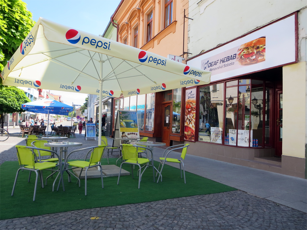DEAF KEBAB zaujme hneď pri vstupe. Nie je to len miesto, kde dostanete ten najväčší kebab v meste, ale aj tiché miesto na posedenie a vychutnanie si arabskej pochúťky. „V sieťach predajní Deaf Kebab, ktoré máme po Slovensku chceme našim zákazníkom priniesť miesto, kam sa budú radi vracať a kde si môžu vychutnať náš kurací kebab. Rovnako aj v Rimavskej Sobote sme sa snažili vytvoriť takéto podmienky,“ dodal Róbert.