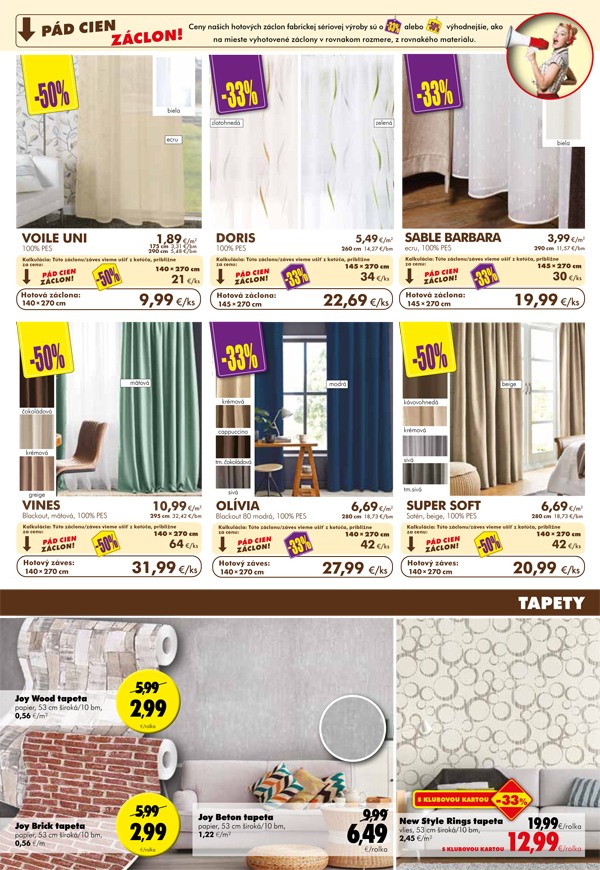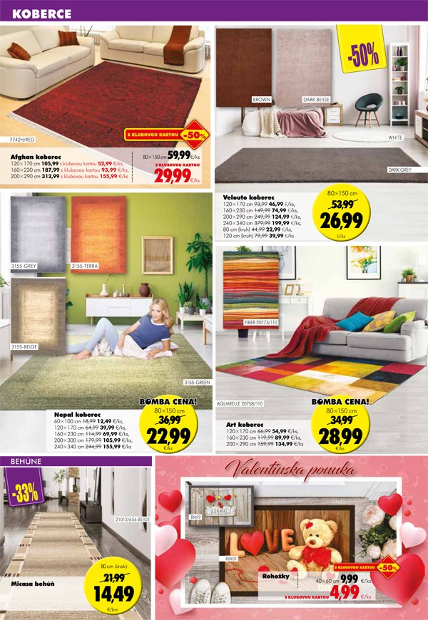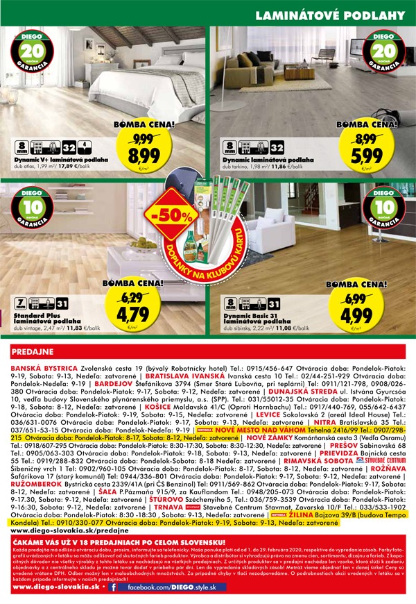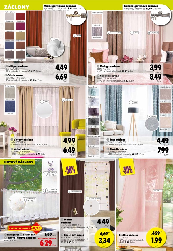 Rimavskosobotská predajňa DIEGO sa rozhodla, že vo februári spraví poriadny prievan. Výsledkom je náhly pád cien záclon, ktoré si teraz viete zohnať s 33 až 50 percentnými zľavami. Vybrať si pritom viete zo širokého sortimentu metrových, ale aj hotových záclon a závesov, vrátane luxusných extra a super soft závesov v rôznych farebných vyhotoveniach. Majiteľov klubkarty čakajú ďalšie výhody, vrátane špeciálnej valentínskej ponuky!