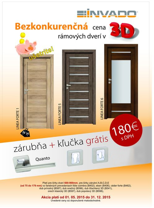 Okrem nákupu zámkovej dlažby si taktiež za výhodné ceny určite vyberiete z obrovského množstva dverí so zárubňami práve tie svoje. „Ponúkame dvere značiek ako Invado, Dre, Porta Doors a ďalšie,“ poznamenal majiteľ.