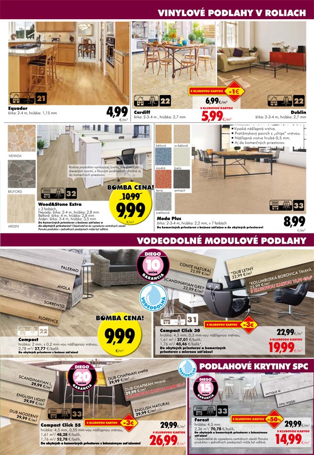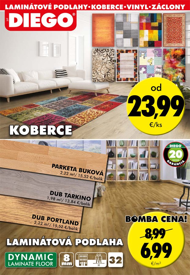 Júlová ponuka predajne DIEGO v Rimavskej Sobote vám uľahčí letné skrášlenie, či rekonštrukciu bytu, domu. Kvalitné laminátové, vinylové, či vodeodolné modulové podlahy v rôznych prevedeniach môžete teraz dostať za bomba ceny. Zaujímavé 33 – 50% zľavy vás čakajú aj pri vybraných kobercoch, aj tapetách. Majiteľov klubovej karty DIEGO čakajú ešte ďalšie špeciálne zľavy.