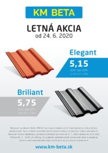 S nákupom sa poponáhľajte, pretože akciovú cenu môžete využiť len do 31. júla 2020. Kvalitnú strešnú krytinu Elegant s dvojitým akrylátovým nástrekom kúpite už za cenu 5,15 €/m2 bez DPH alebo 6,18 €/m2 s DPH. Ďalší variant strešnej krytiny so špeciálnym dvojitým nástrekom a lesklom Briliant bude váš už za 5,75 €/m2 bez DPH alebo 6,90 €/m2 s DPH.