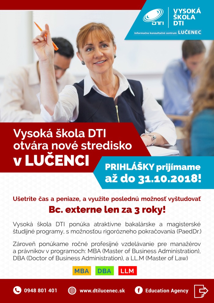 Ušetrite čas a peniaze, a využite poslednú možnosť vyštudovať Bc. stupeň externe len za 3 roky. Prihlášky na Bc. a Mgr. štúdium sa prijímajú až do 31.10.2018!