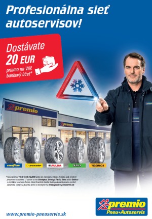 Našich zákazníkov chceme prekvapiť dvadsiatimi eurami, ktoré môžu z nákupu dostať späť, priamo na svoj účet. Stačí ak si v našom servise do 15.12.2018 kúpia sadu zimných pneumatík značiek Goodyear, Dunlop, Fulda, Sava alebo Debica, v rozmere 17 palcov a viac, aj s montážou.