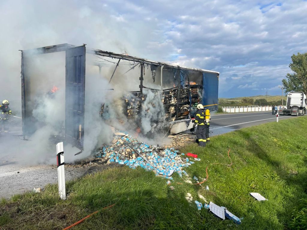 Podľa informácií z miesta udalosti ide o kamión s rumunskými poznávacími značkami. Jeho vodič mal smerovať od Rimavskej Soboty na Košice, keď mal počas jazdy spozorovať, že náves kamióna horí. Vodič zastal a stihol ho ešte odpojiť. Náves spolu s tovarom, ktorý prepravoval, však takmer celý zhorel.
