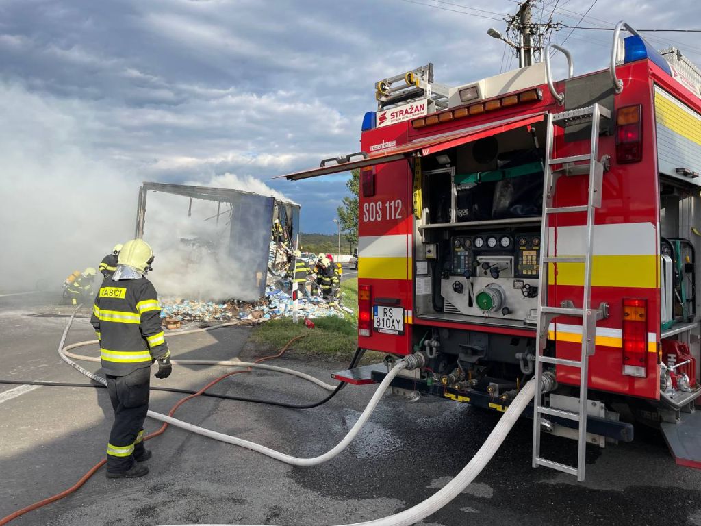 FOTO: Horiaci kamión nateraz zablokoval premávku