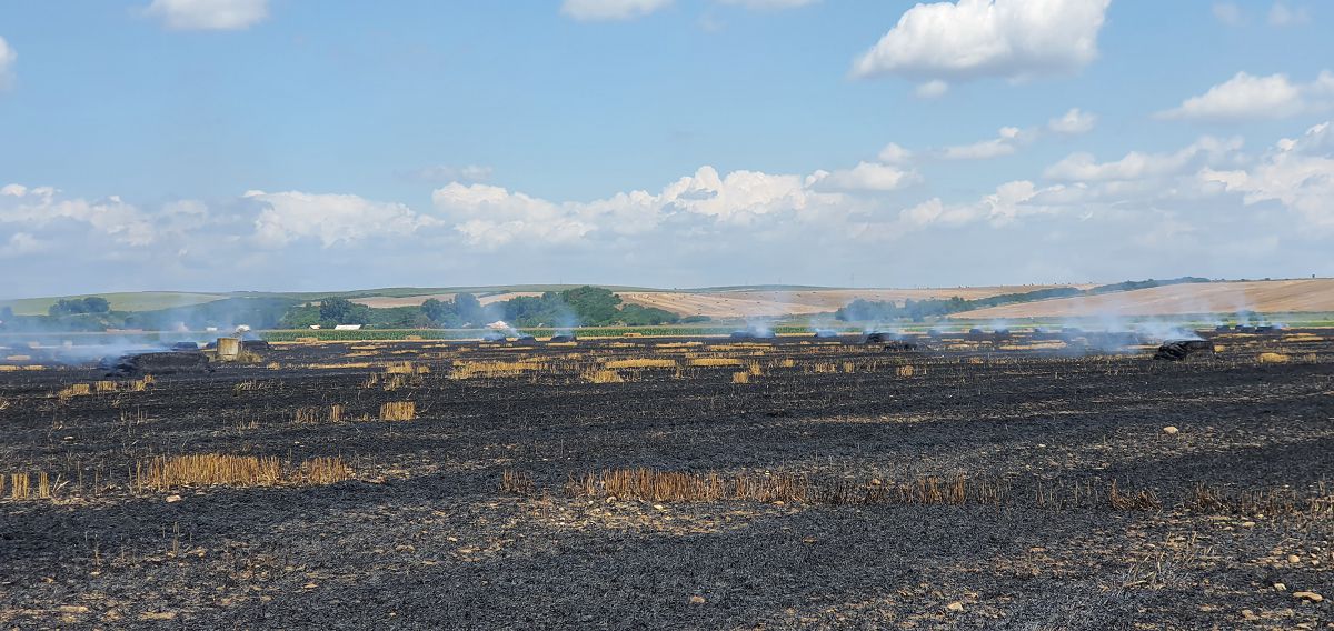 Na miesto boli vyslaní aj hasiči, a to na štyroch vozidlách. Na poli je ešte aj v týchto chvíľach vidieť čiastočne alebo úplne zhorené balíky slamy, z ktorých pomaly stúpa dym. Pravdepodobne sa požiar rozšíril rýchlo a pole so suchou slamou mu podľahlo za niekoľko minút.